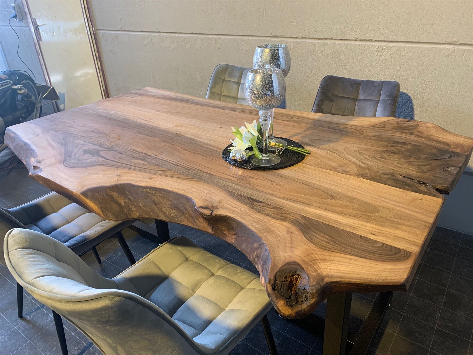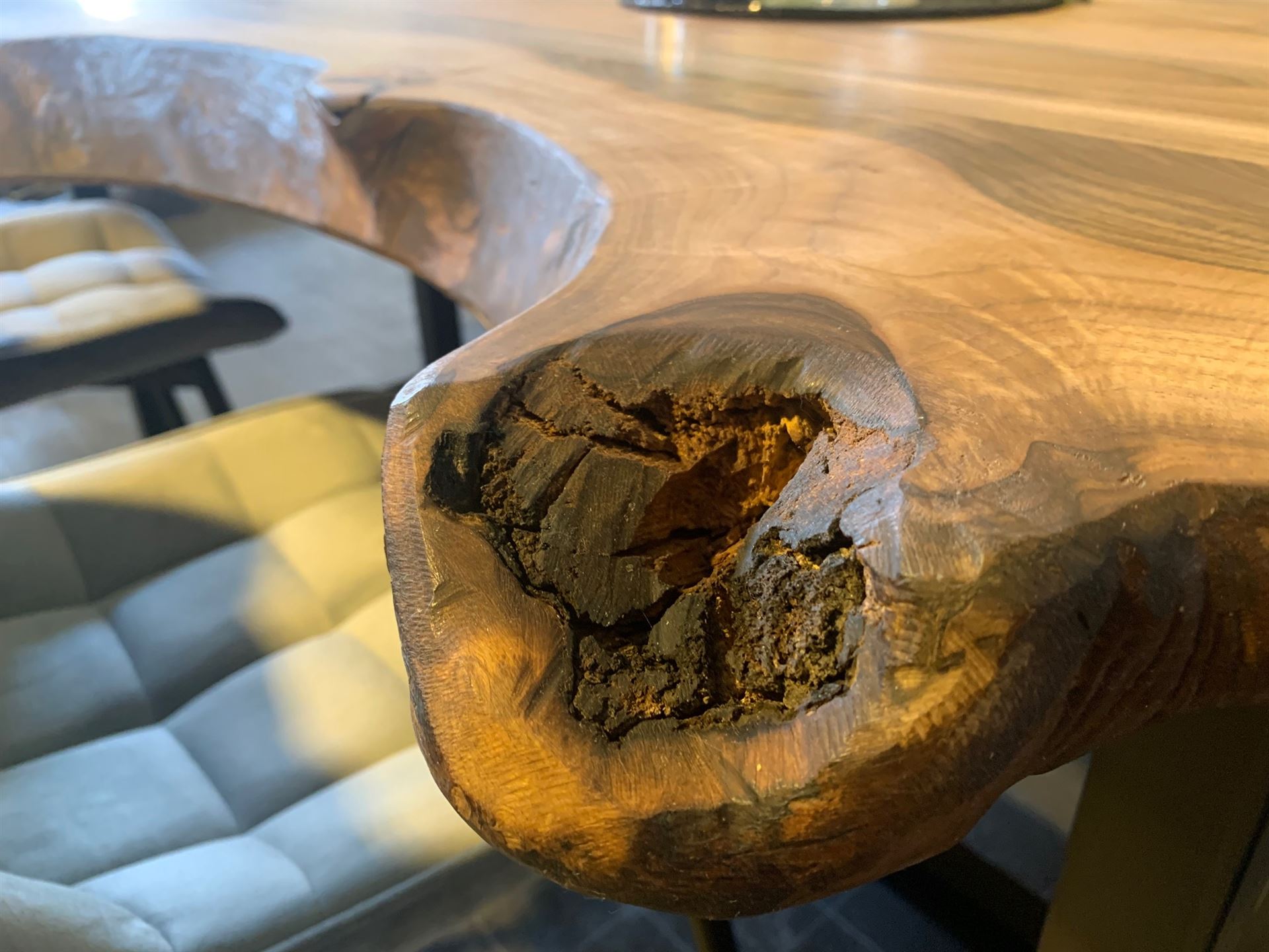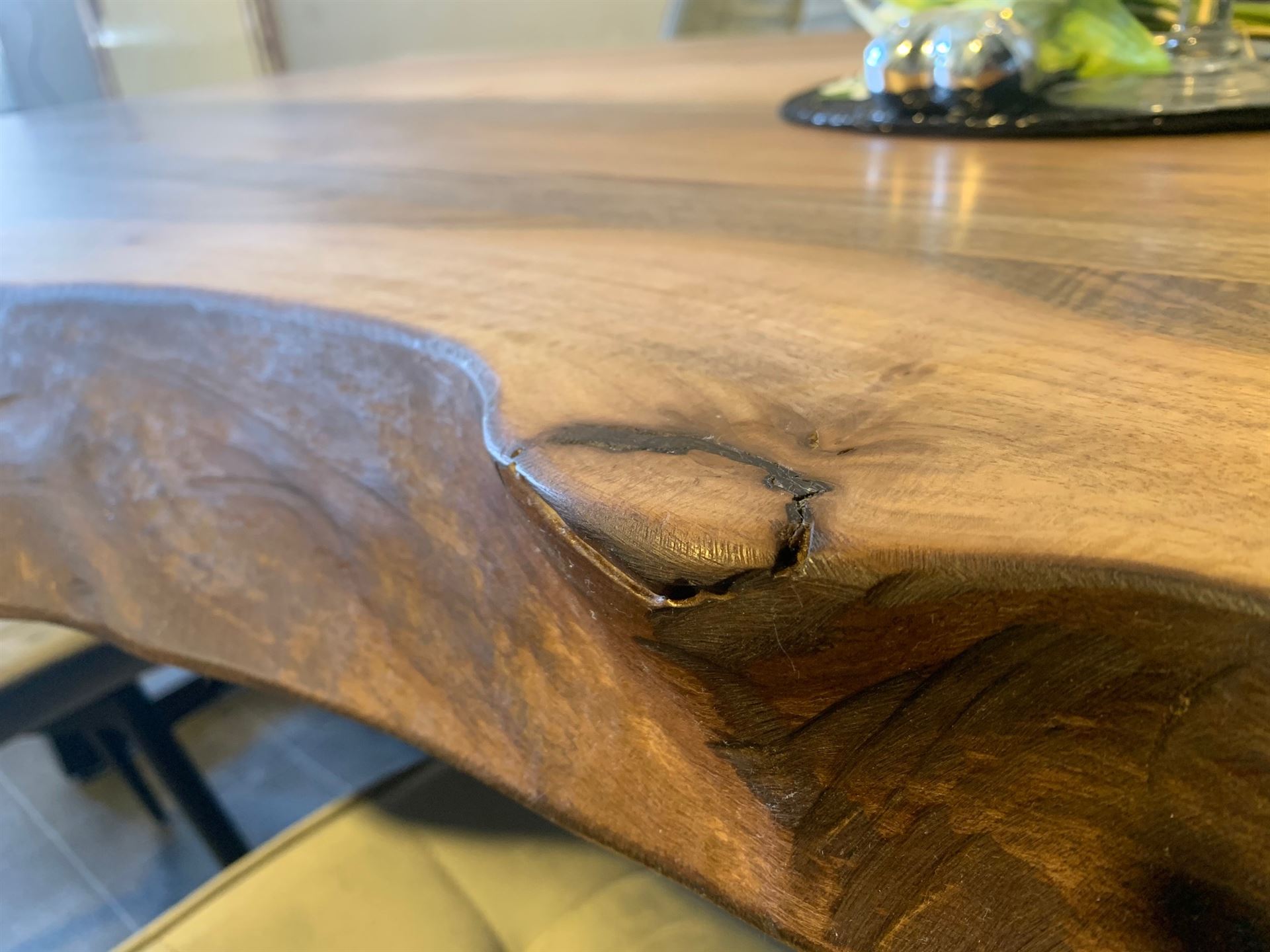 Edler Europäischer Nussbaumtisch mit lebendigen Charakter.