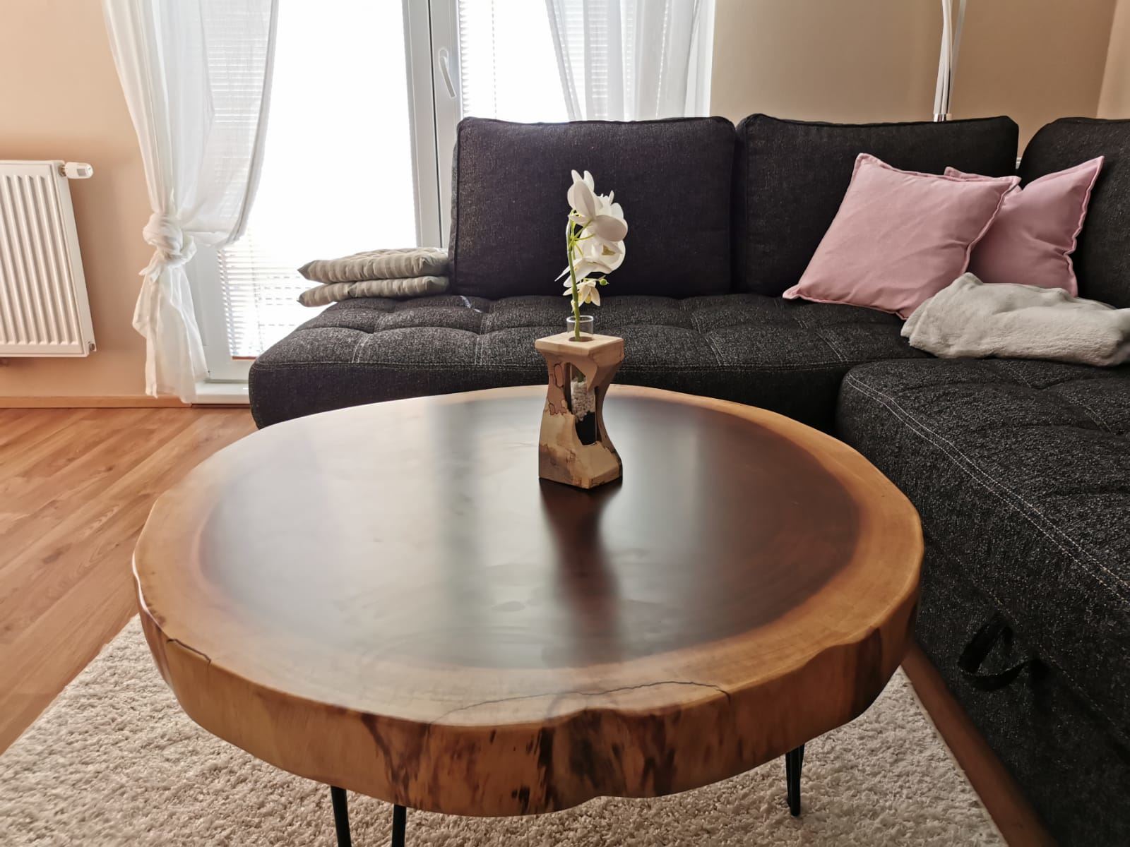 schöne runde Platte als Wohnzimmertisch ( südamerikanischer Nußbaum ( SUAR )