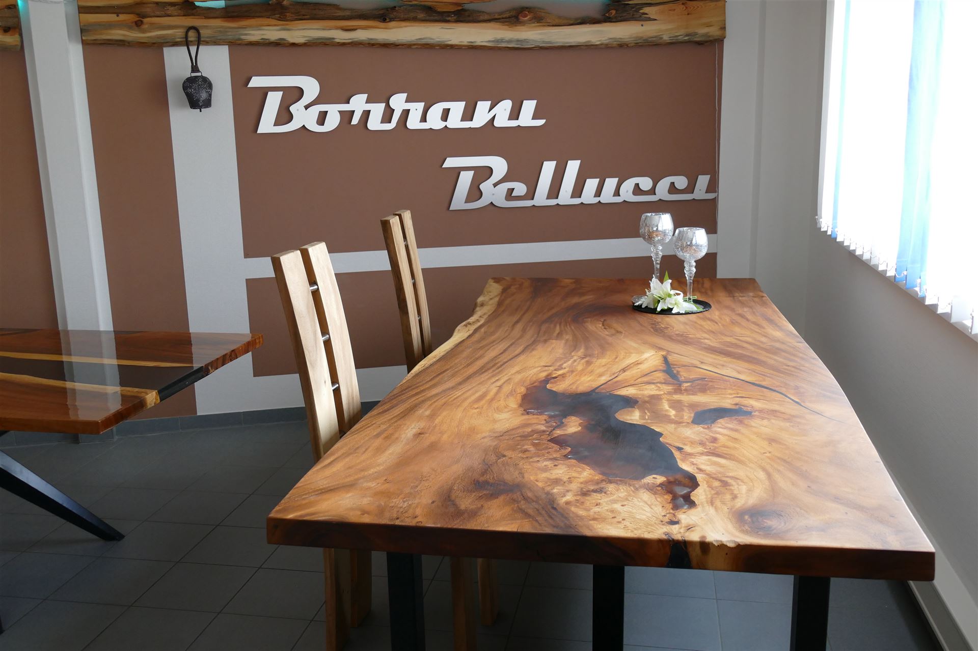 iI`bello - Tischplatte aus südamerikanischen Nussbaum ( SUAR ) mit Harzeinsatz