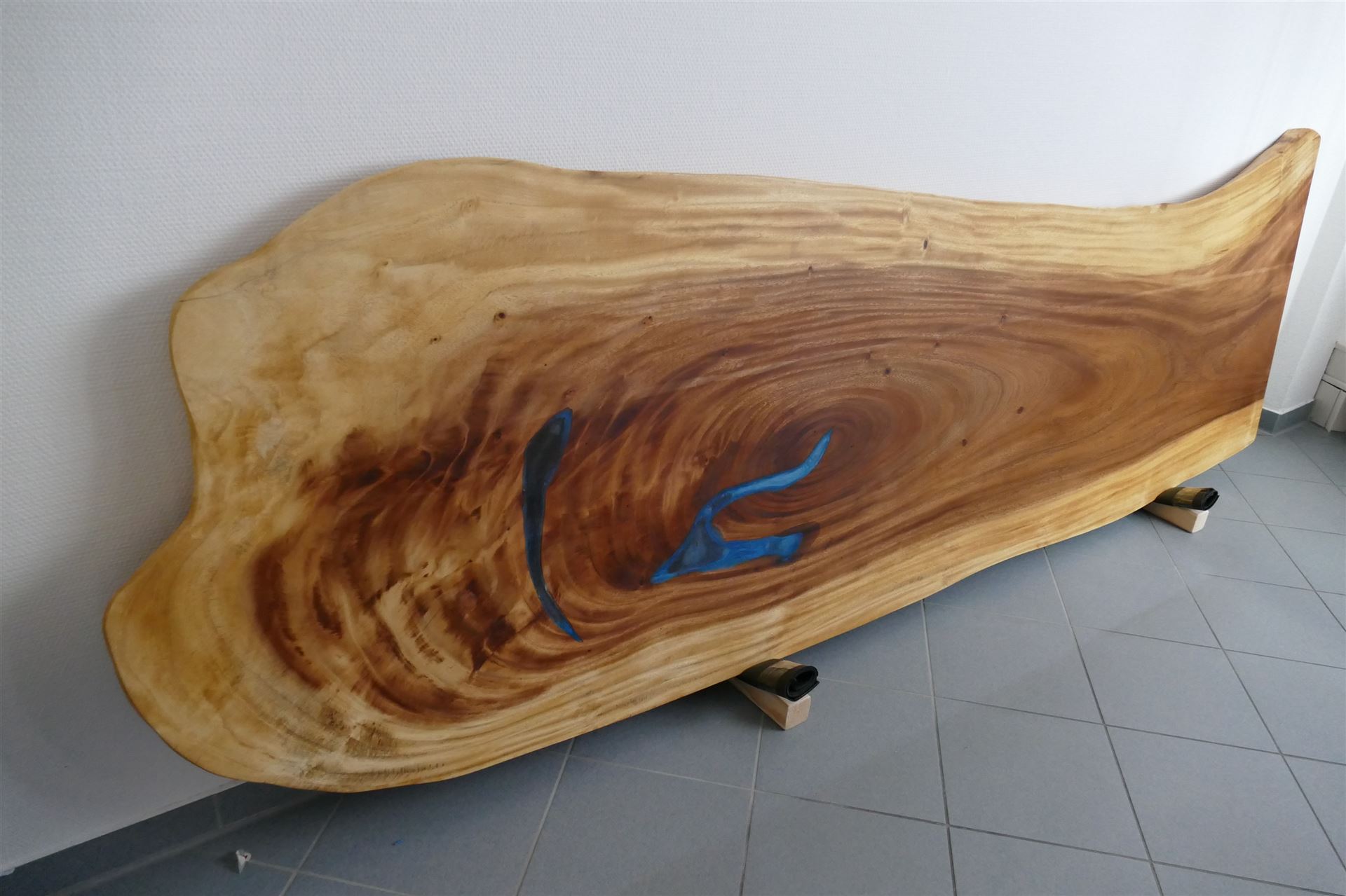 Unikat-Tischplatte aus südamerikanischen Nussbaum im edlen und einzigartigen Design. Preis auf Anfrage