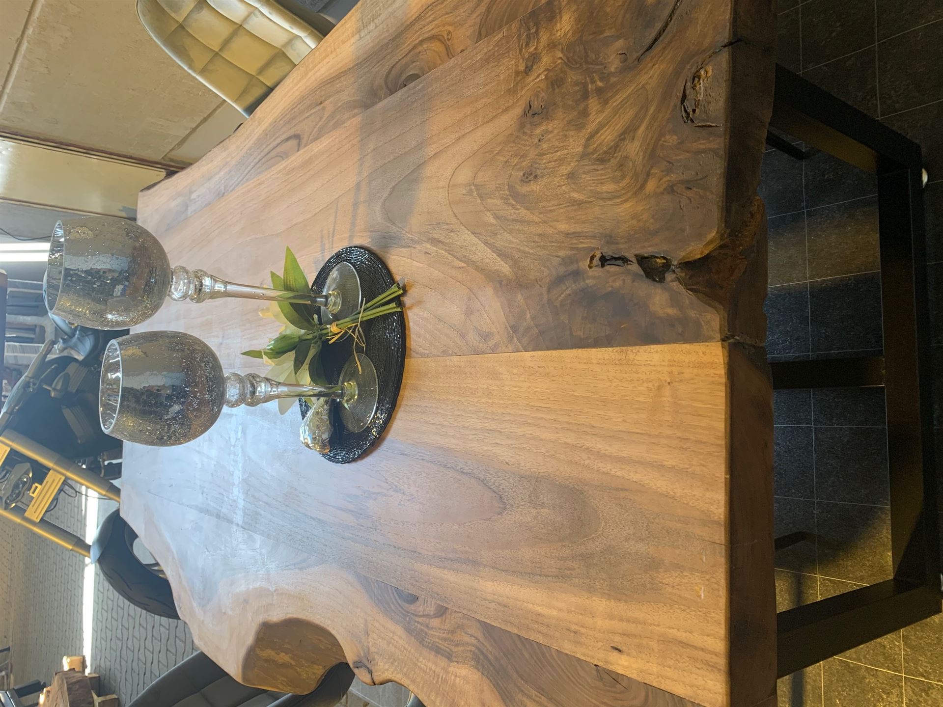 Edler Europäischer Nussbaumtisch mit lebendigen Charakter.