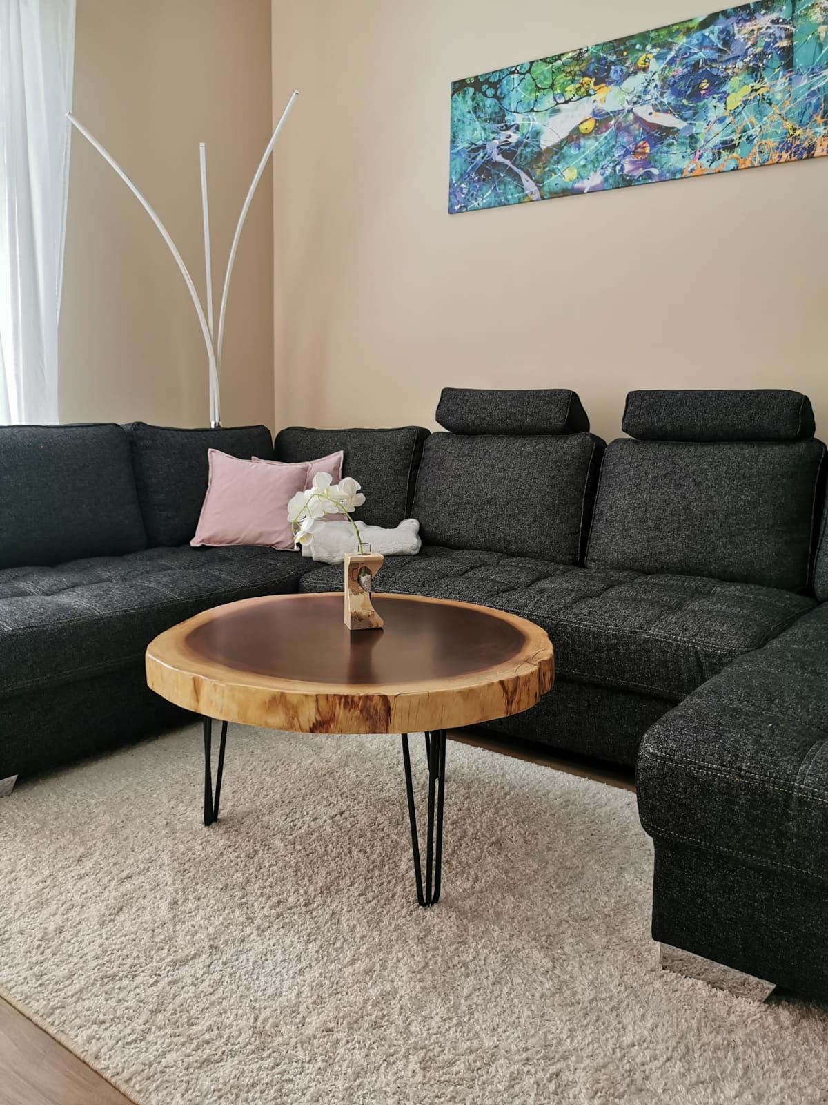 schöne runde Platte als Wohnzimmertisch ( südamerikanischer Nußbaum ( SUAR )