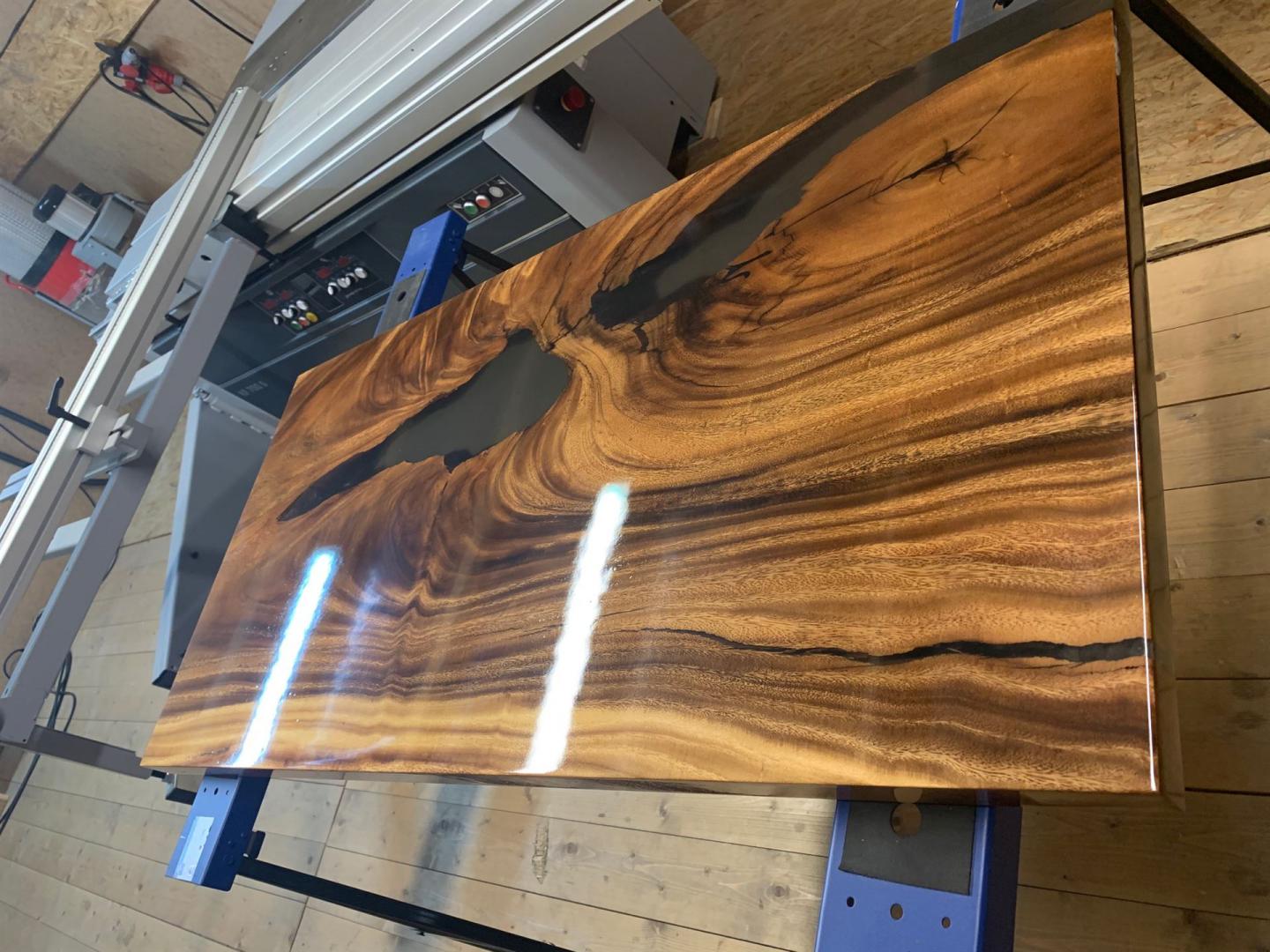 Beistelltisch mit edlem Nussbaumholz, mit Harz gefüllt in 3D Optik